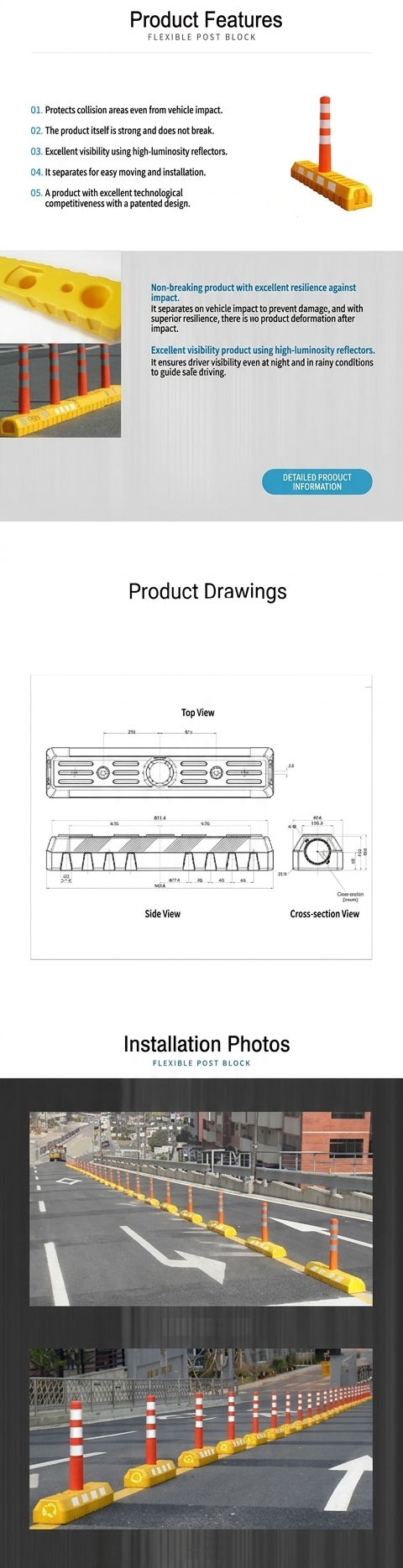 Share Flexible Post Block(L) Product Description Product Inquiry Partnership Inquiry Product SpecificationsProduct NameFlexible Post Block(L)MaterialPU,Composed PE,HDPESpecifiactionL1,000 x W200 x H160mm Detailed Description