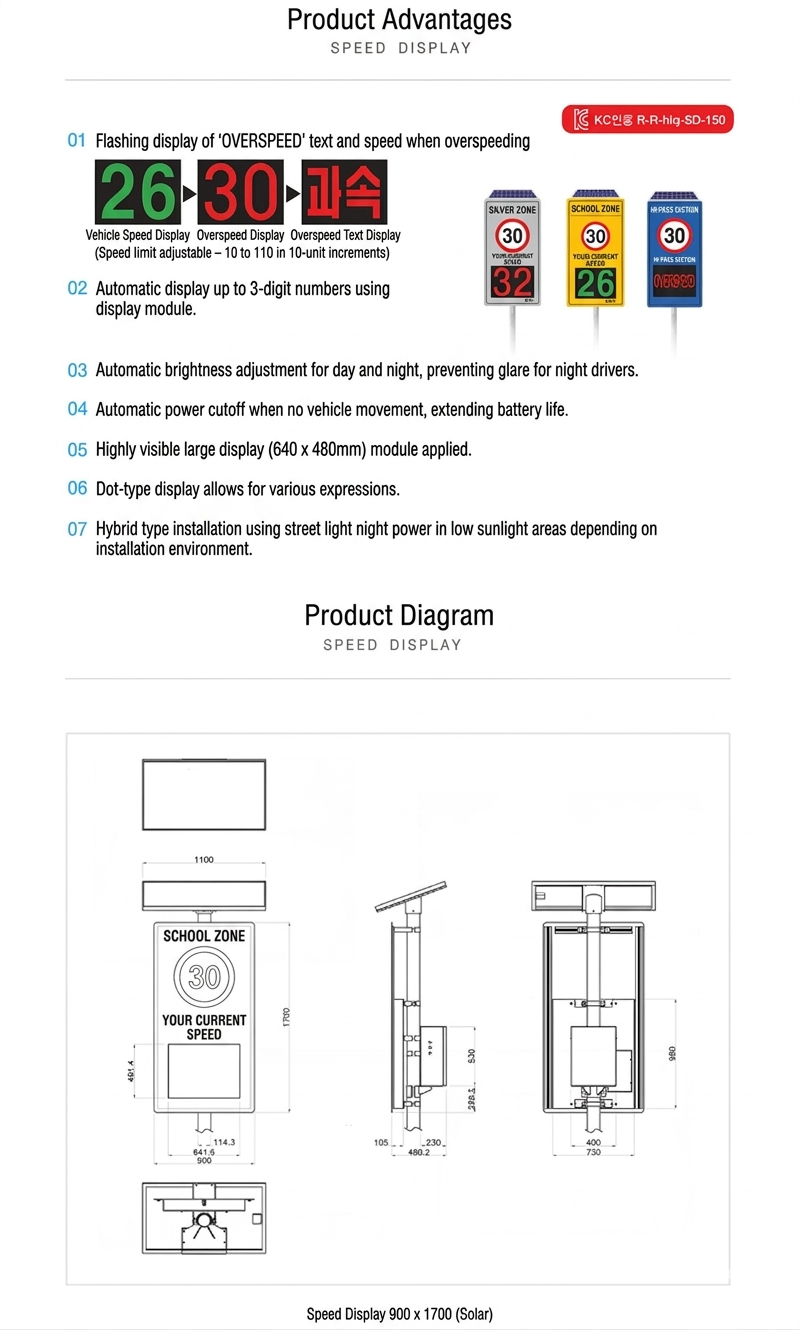 | Speed Display | P10 LED display module (9,216 LEDs) |